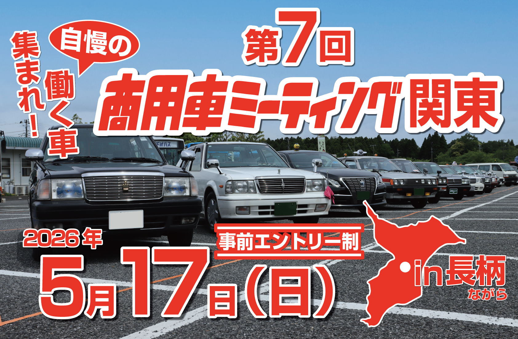 「はたらく自動車」の魅力は、何歳になっても感じるもの。その想いを自家用車という形で楽しむ商用車オーナーは意外と多い。そんな商用車オーナーの交流と、その魅力を分かち合える場を「関東」でも設けたいと考え、既に沢山の開催実績を持つ「商用車ミーティング」主催者の許諾のもと千城交通部が主体となり開催するのが本イベントです。「タクシー」「バス」「トラック」など働く車なら大歓迎。皆さまの自慢の商用車を披露してみてはいかがでしょう。