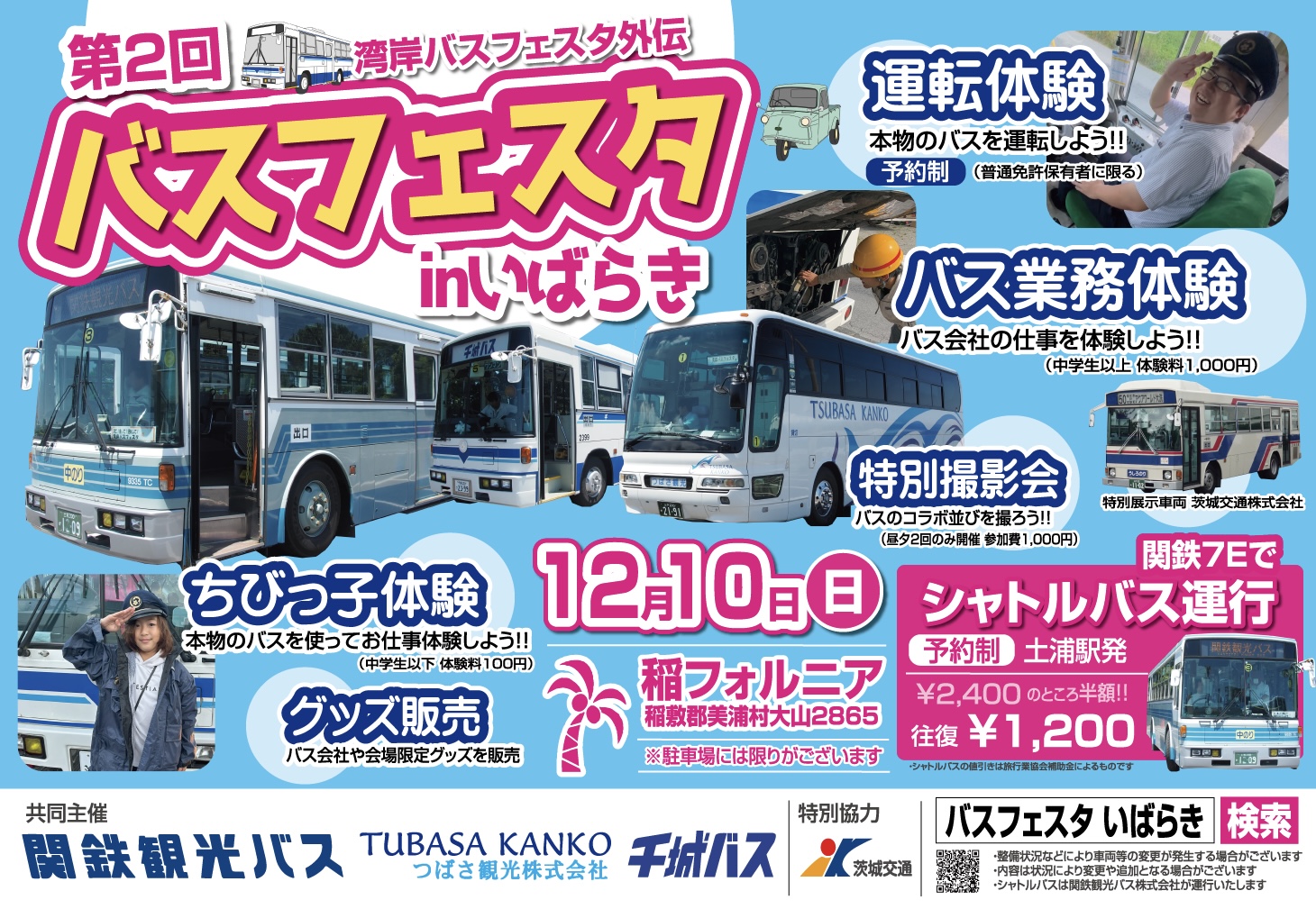 ・当催事はつばさ観光株式会社、関鉄観光バス株式会社、千城交通部が共同主催運営となります。