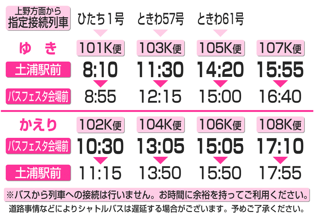 会場直通バスを運行いたします
